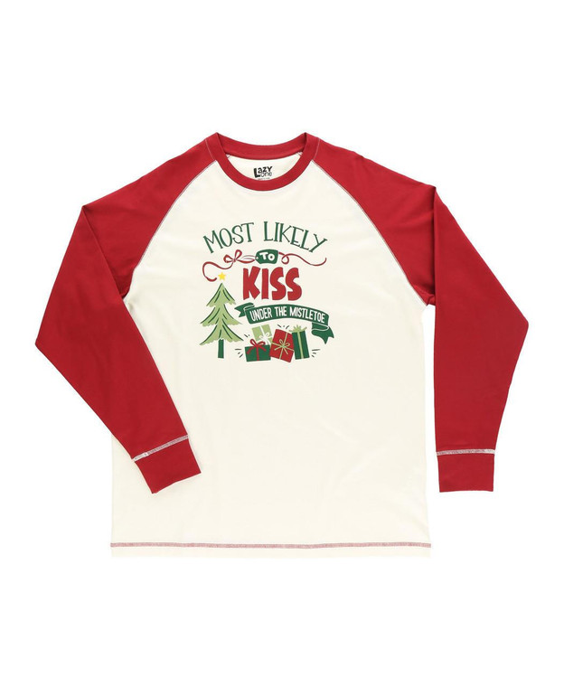 Grab your special someone a comfy pajama tee and meet them under the mistletoe this Christmas season with our Most Likely Under Mistletoe pajama tee. Made with 100% combed cotton it will keep you comfortable and warm all sleep long. Our Under the Mistletoe Long Sleeve pajama tee features a fun Christmas design and can be mixed and match with our Women's pajama pant and Men's pajama pant. Matching pj pants can be purchased separately.